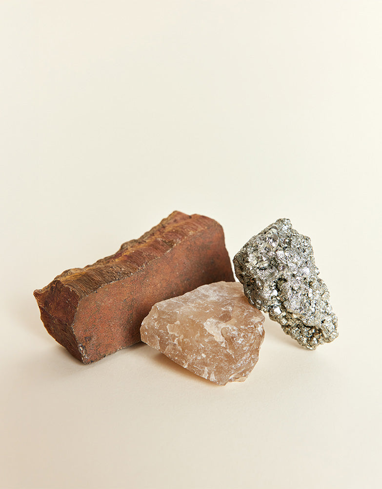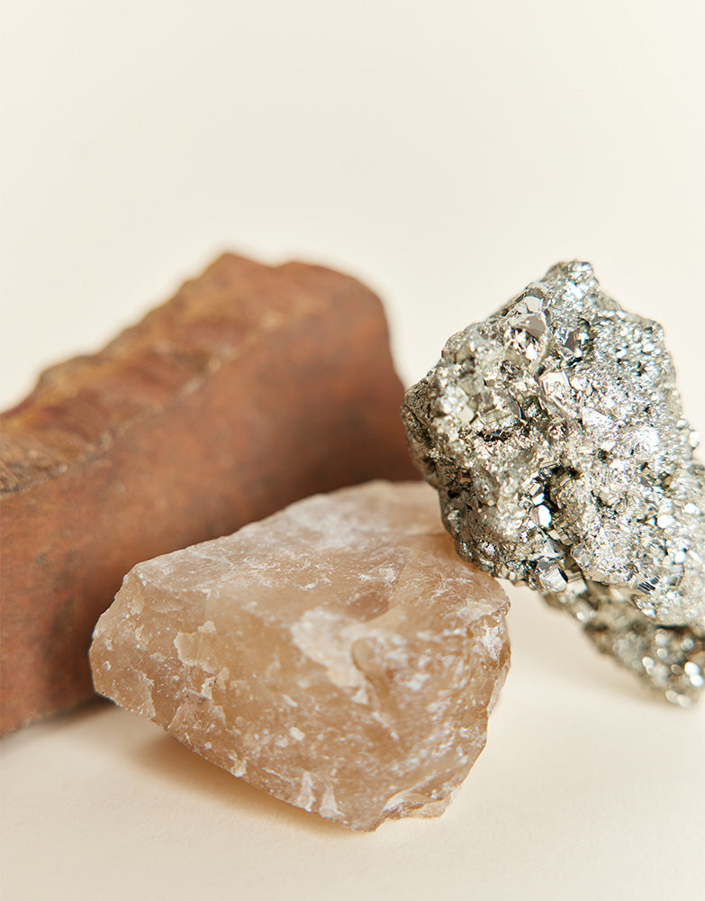 Três pedras que irradiam força, coragem e luz — energia vital para quem busca prosperar com propósito.