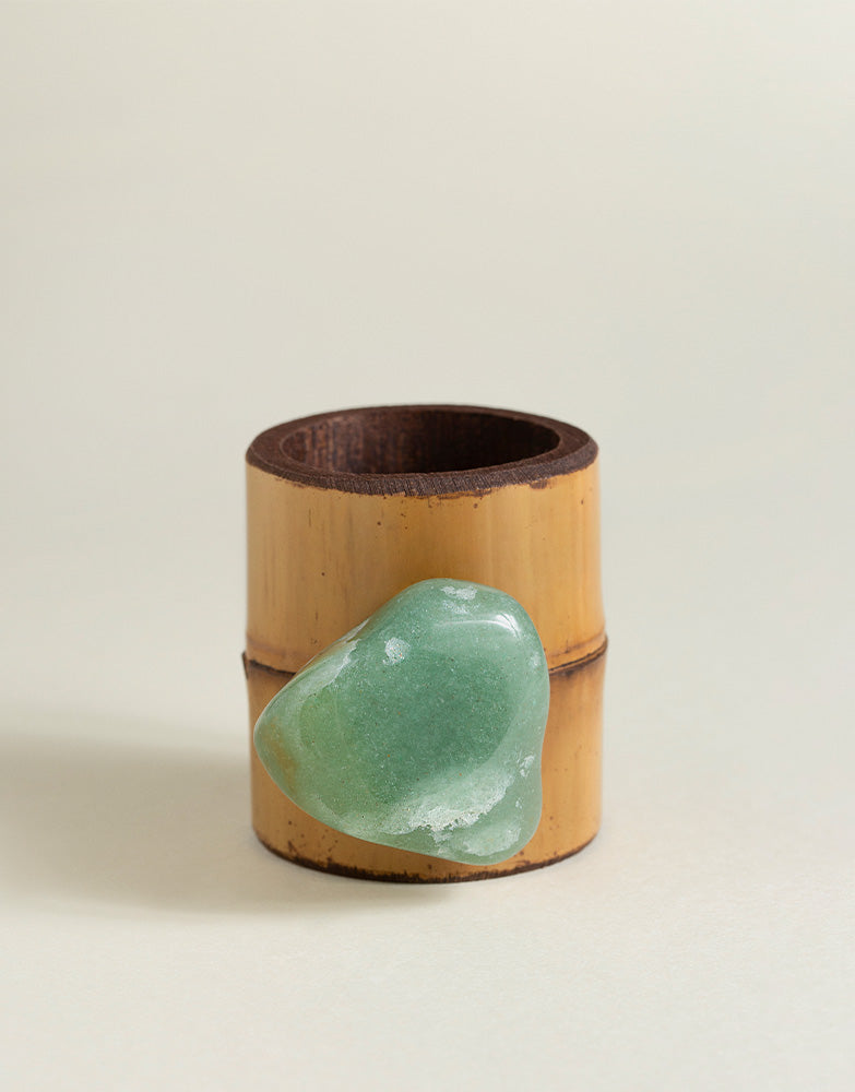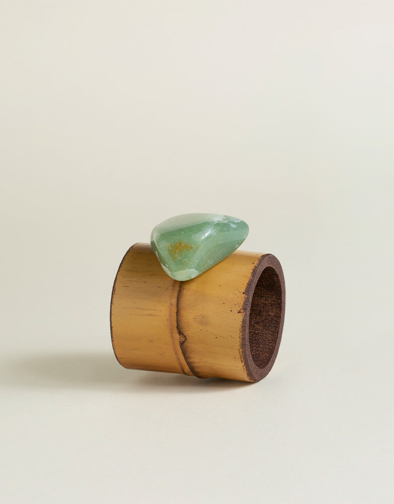 Porta-guardanapos em bambu natural com detalhe de pedra.